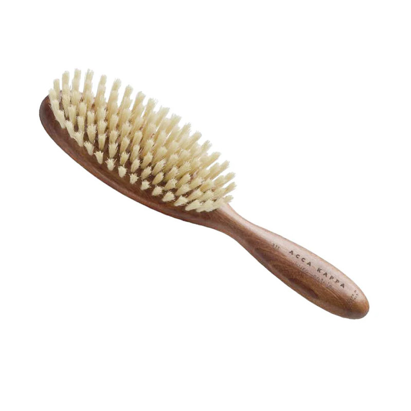 Spazzola ovale con manico in legno e pura setola. Lunghezza 22 cm.
